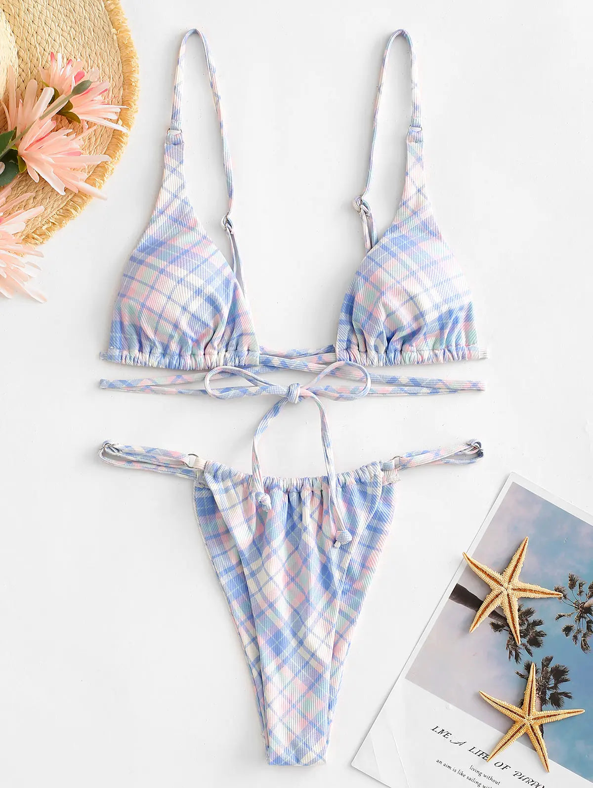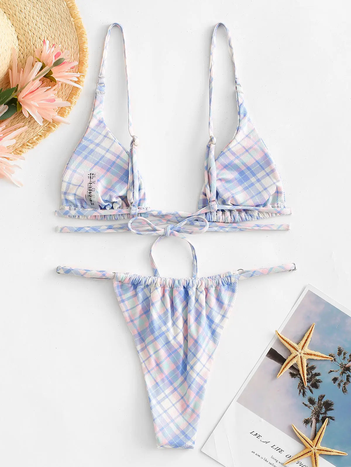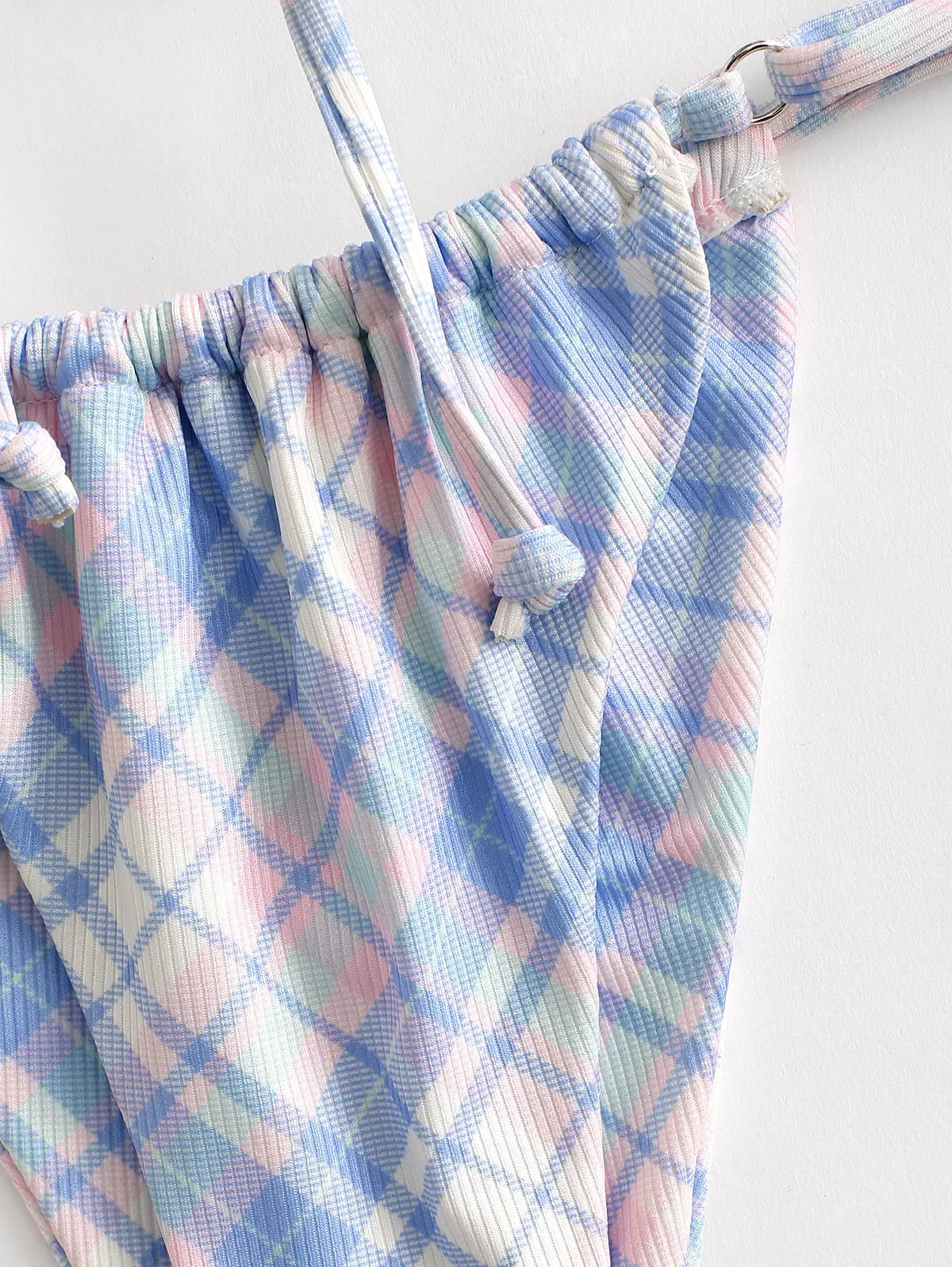 Com estampa xadrez super charmosa, o conjunto traz a parte de baixo que você pode ajustar, amarrar de jeitos diferentes e usar tanto como detalhe fashion quanto para cobrir um pouco mais o quadril e a barriga quando quiser.